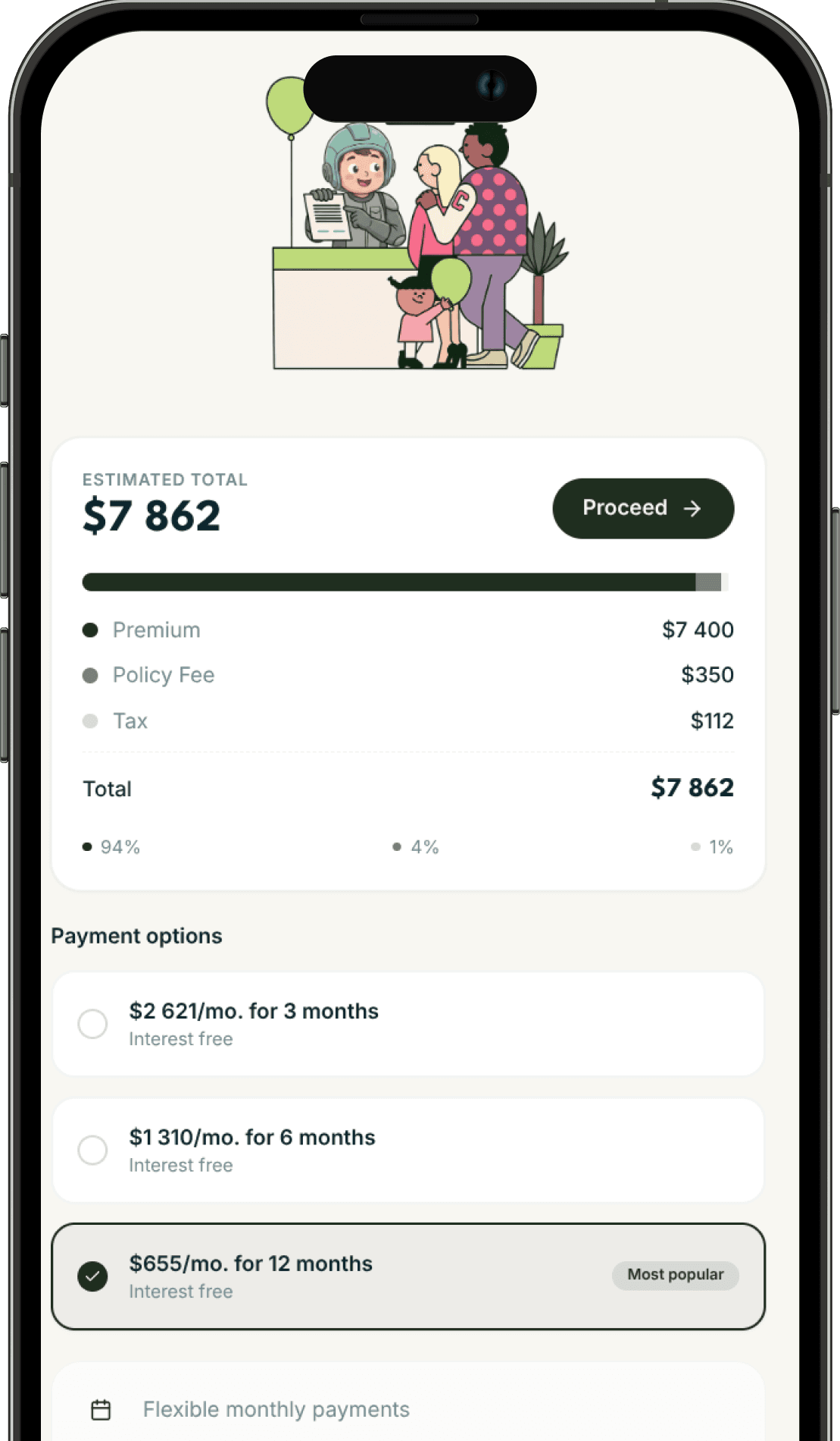Select split payments of 3, 6, or 10 months. Your monthly amount is calculated and shown before you confirm - no surprises.